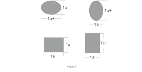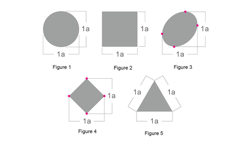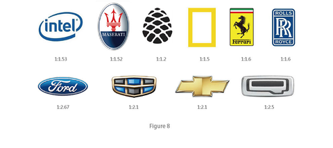We use a as the unit to measure the length width ratio of the logo. In Figure 1 and Figure 2, the length width ratio of the positive circle and the square is 1:1. The same length width ratio is the proportion with the smallest length width ratio. Such a logo is the fullest logo and the most widely used logo form in the world. Fig. 3 and Fig. 4 are another 1:1 scale, which is not measured by the edge of the logo, but by the ratio of the highest point to the widest point (red dot in the figure). Figure 5 is an isosceles triangle. Such a polygon takes the length of each side as the reference scale, which is also a 1:1 ratio. You can more intuitively experience the full modeling charm of the 1:1 length width ratio logo from the five cases in Figure 6. Naturally, it is also the most widely cited one.
