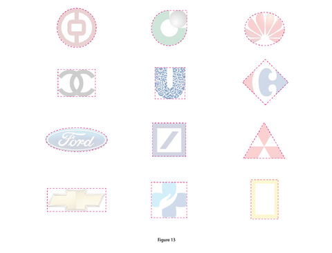 The external geometric structure line refers to the generalization and geometric outline line outside the logo (Figure 13). The pink dotted line shown in Figure 13 is the external geometric structure line